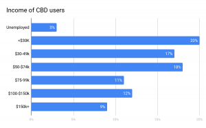 20% of hemp-derived CBD users earn less than $30k/year; 17% earn more than $100/year.