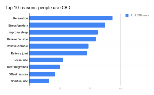 People most commonly use CBD for relaxation; anxiety is the most common ailment treated with CBD